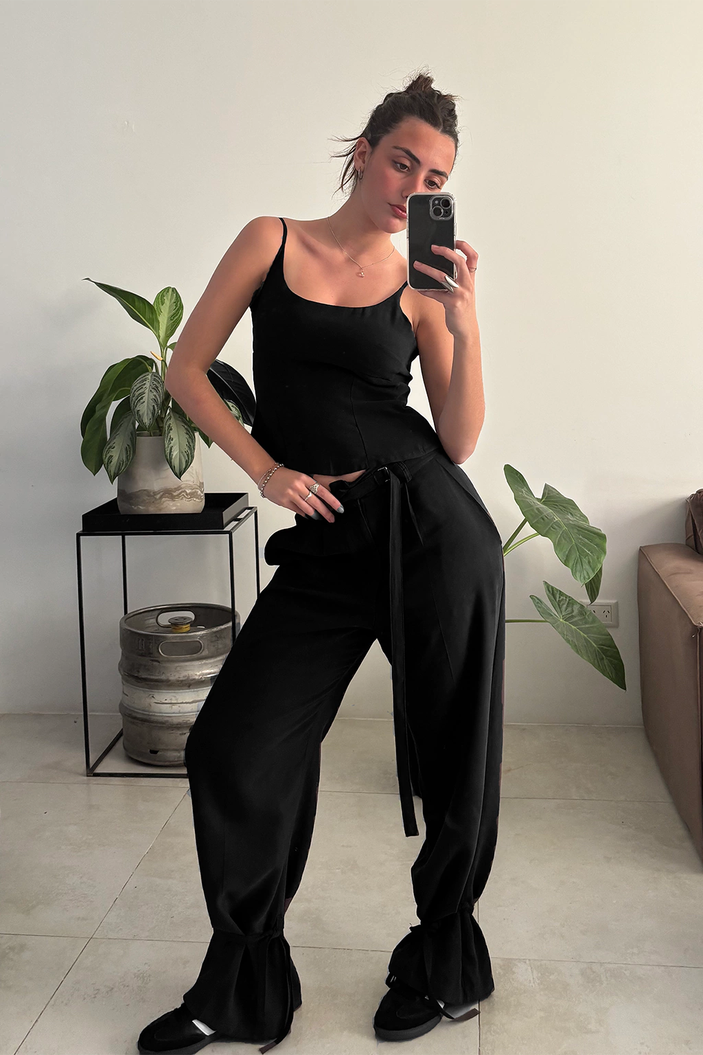 Top en tela sastrera suave con caída ligera. Con recortes que estilizan la silueta tipo corset y espalda abierta con tiras regulables. Versátil y femenino, ideal para eventos tanto de día o de noche. Combinalo con el Pantalón Cromo para completar el look.